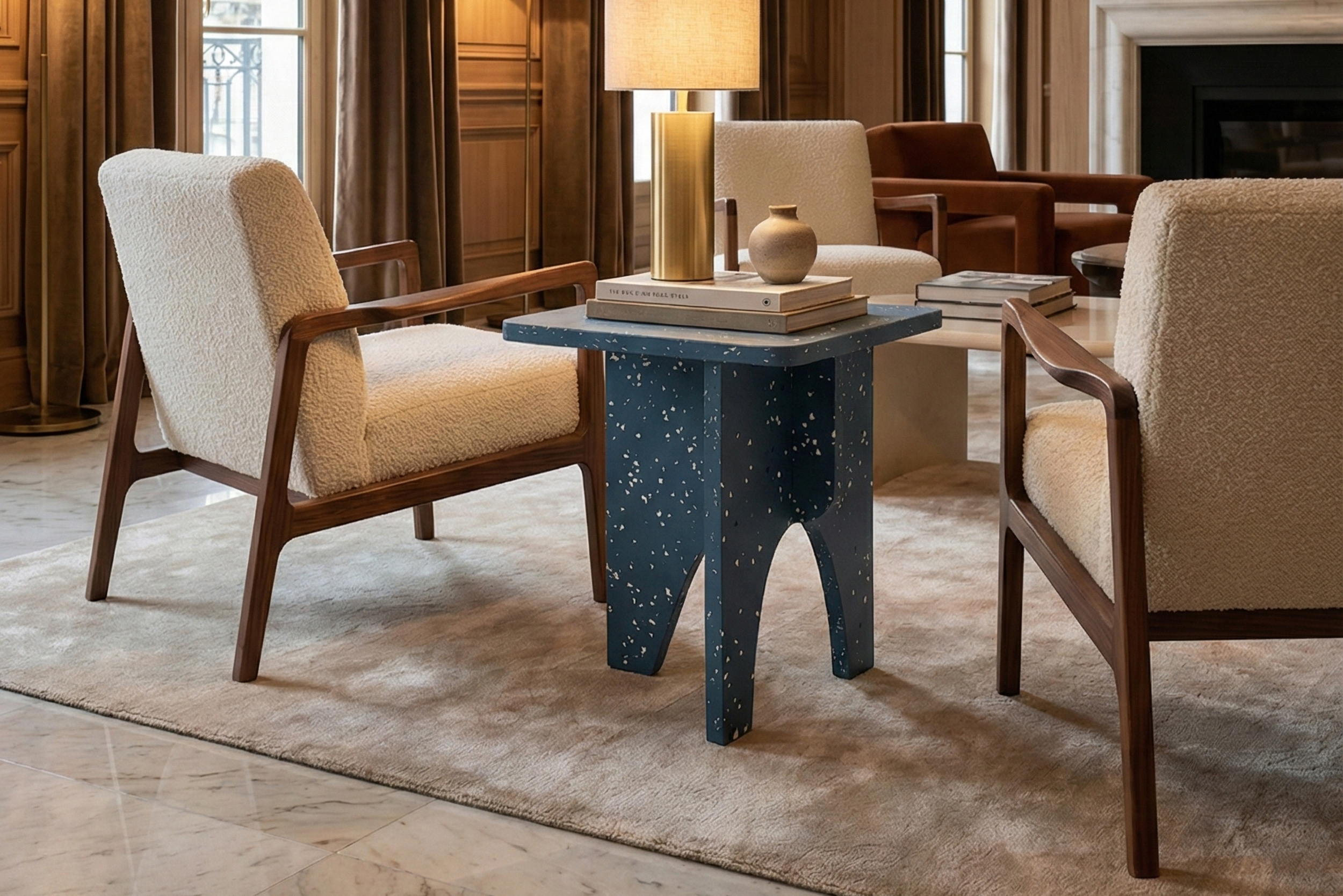 It all begins with an idea. We transform recycled materials into meaningful designs and experiences. Through innovative recycling and thoughtful design, we create durable surfaces and products that bring sustainability and creativity together.
